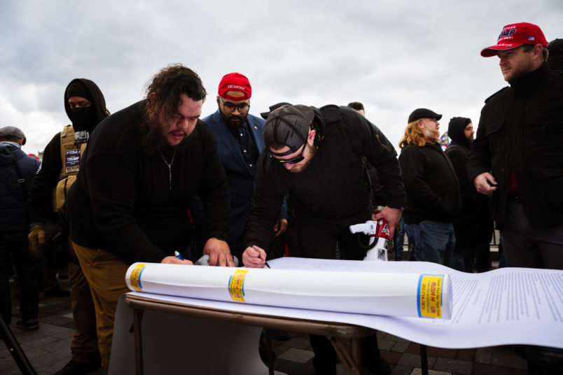There have been hints in several ongoing criminal cases that individuals in these groups may have had some sort of connection to Trump’s orbit. Oath Keeper Joshua James, for example, was one of multiple Oath Keepers to provide security for Trump confidante Roger Stone the day before the attack.