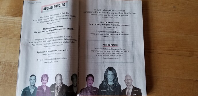 Bezos was quoted in this months Reader’s Digest. The one right above points to ponder.
