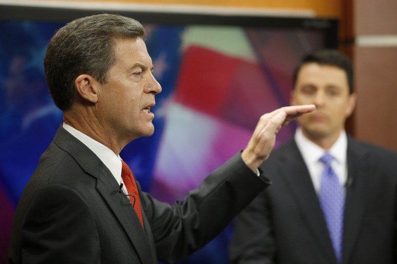 Davis is wooing moderate Republicans and unaffiliated voters who are worried about tax cuts enacted at Brownback’s urging. The cuts dropped the state’s top personal income tax rate by 26 percent and exempted the owners of 191,000 businesses from income taxes altogether.