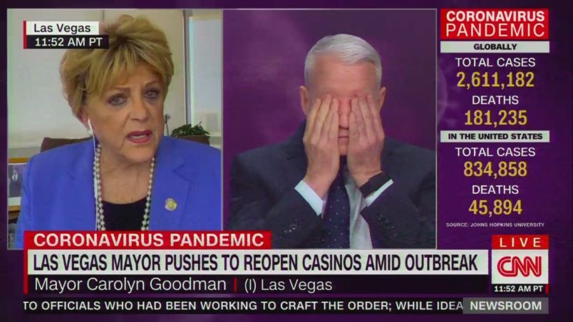 The mayor of Las Vegas, Carolyn Goodman, appeared on CNN on Wednesday afternoon to discuss with Anderson Cooper how she wants all of her city’s casinos to reopen during the COVID-19 outbreak.