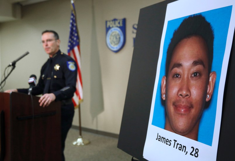 Stone’s injuries were so severe that police initially thought he could die, so they called in detectives who have been investigating public tips on the case ever since, Somers said. One led to Tran in recent days, and arrest and search warrants were issued Tuesday while he was kept under surveillance.