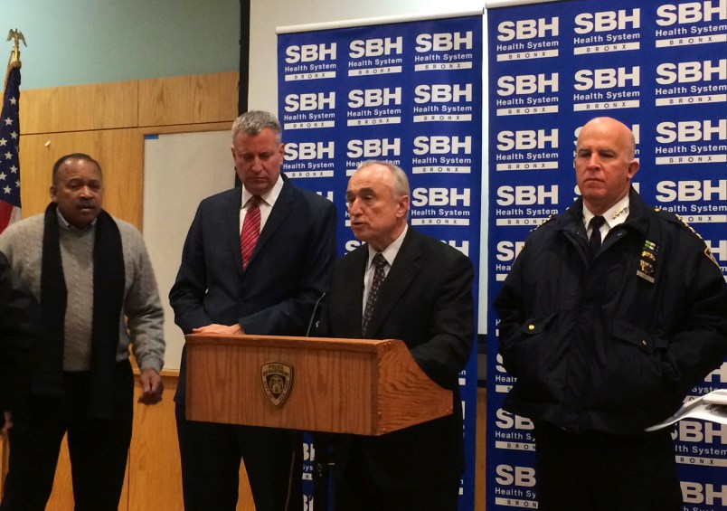 “They went above and beyond the call to protect their fellow New Yorkers. Thank God the officers are doing well and will recover,” Mayor Bill de Blasio said at the hospital where the officers are recovering.