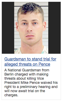 JOHNSTOWN, Pa. (AP) — A National Guardsman has admitted that he threatened to kill Vice President Mike Pence before his visit to Pennsylvania for the annual commemoration of the Flight 93 crash on Sept. 11.