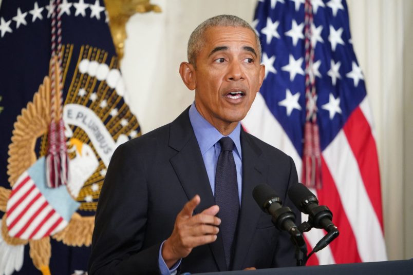 “Right here, in the United States of America, we just saw a sitting president deny the clear results of an election and help incite a violent insurrection at the nation’s capital,” Obama said. “Not only that, a majority of his party, including many who occupy some of the highest offices of the land, continue to cast doubt on the legitimacy of the last election and are using it to justify laws to restrict the vote and make it easier to overturn the will of the people in states where they hold power.”