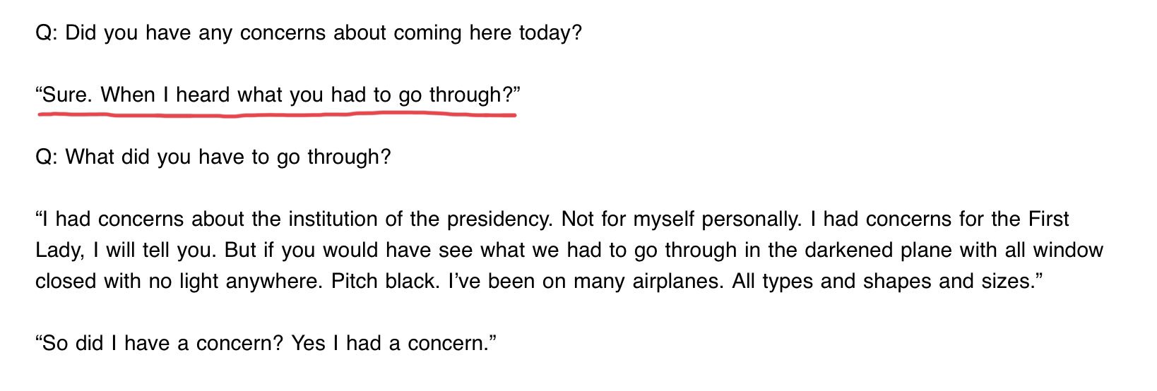This is of mild interest but we need a thread on how askeered Trump was that they had to close the windows and be as inconspicuous as possible landing in Iraq. He talked about what they “went through,” said he was concerned for Melania and “the institution of the presidency” but not of course for his own stern, manly self.