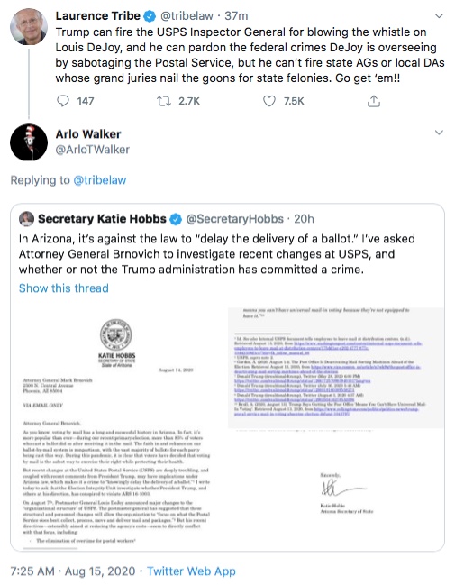 Late last month general counsel for the Postal Service Thomas Marshall warned in letters to election officials in Pennsylvania and other electoral battleground states like Michigan and Florida that “certain deadlines for requesting and casting mail-in ballots are incongruous with the Postal Service’s delivery standards.”