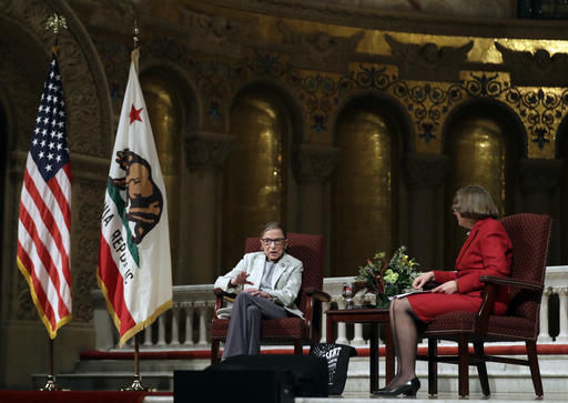 STANFORD, Calif. (AP) — U.S. Supreme Court Justice Ruth Bader Ginsburg lamented partisanship in Congress during a talk at Stanford University on Monday and said she hoped it would return to an era when “it was working for the good of the country and not just along party lines.”