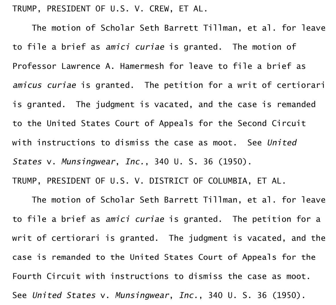 Anyway, here are the two summary orders: