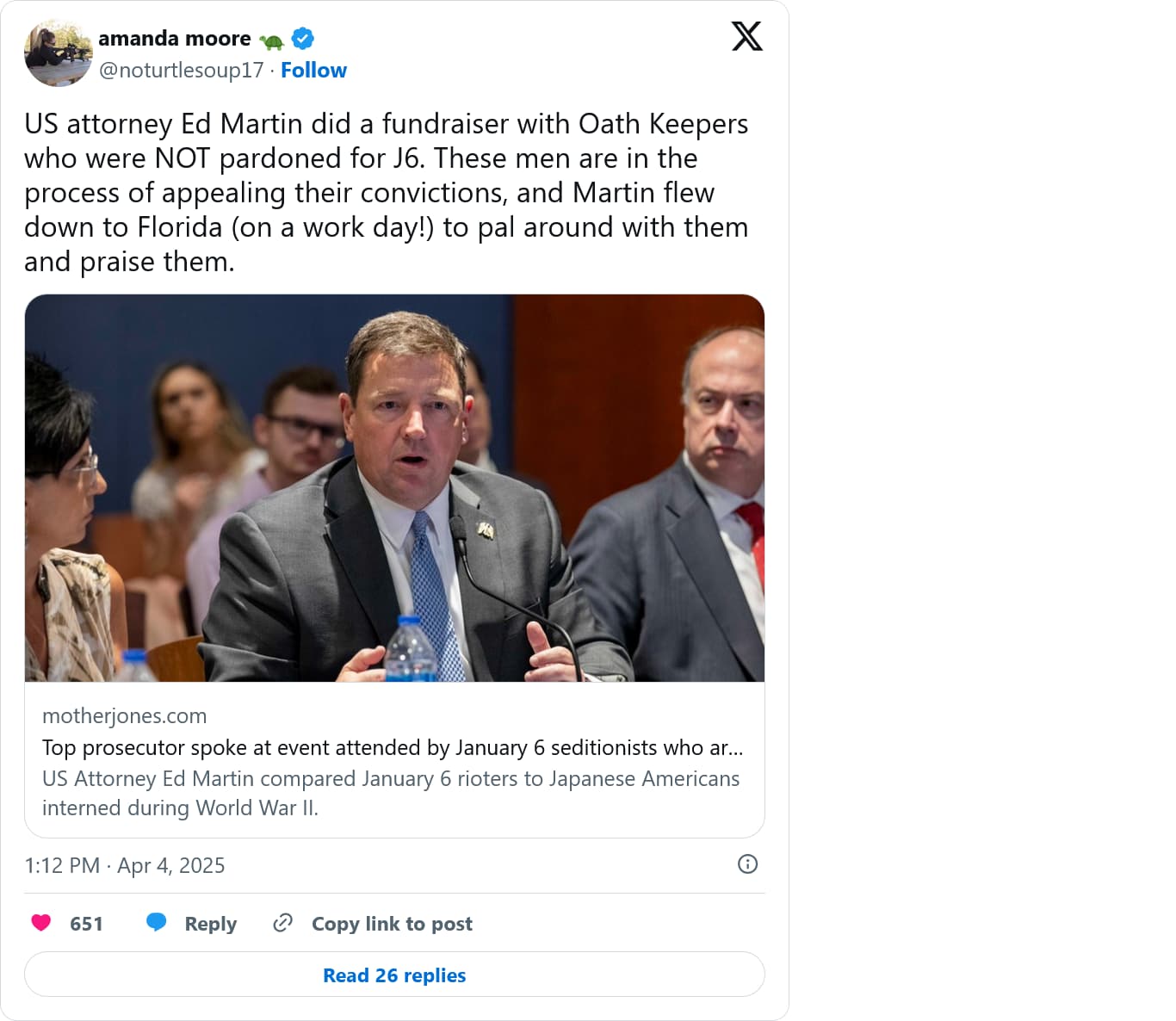Top DOJ Prosecutor Speaks At J6 Fundraiser For Oath Keepers, Compares Them To WWII Interned Japanese
