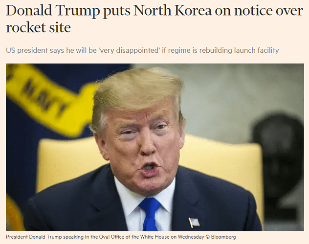 When asked about the reports about work at the Tongchang-ri site, Trump told reporters at the White House he would be “very, very disappointed in Chairman Kim” if that were happening. He also said it was “a very early report” and that “we’ll see what happens. We’ll take a look. It will ultimately get solved.”