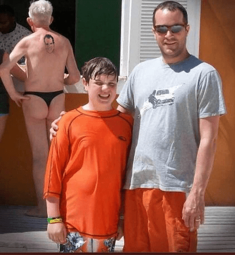 I’m pretty sure this bathing suit is a felony in and of itself. Lock him up.