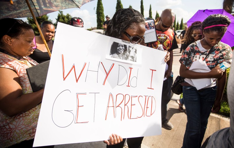 Video from the July 10, 2015, traffic stop shows Trooper Brian Encinia drawing his stun gun and telling Bland, “I will light you up!” She can later be heard screaming off-camera that the trooper was about to break her wrists and saying that he knocked her head into the ground. The video provoked national outrage and drew the attention of the Black Lives Matter movement.