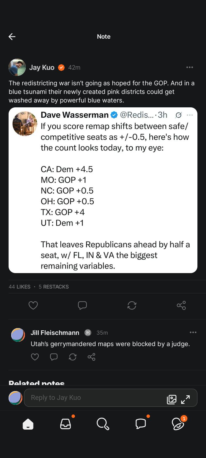 We are still waiting on the court decision here in Texas. The 3 - judge panel in El Paso has not made a ruling as of yet which leaves a lot of uncertainty. The 9- day hearing revealed how much control the Trump R’s had in drawing the map.
