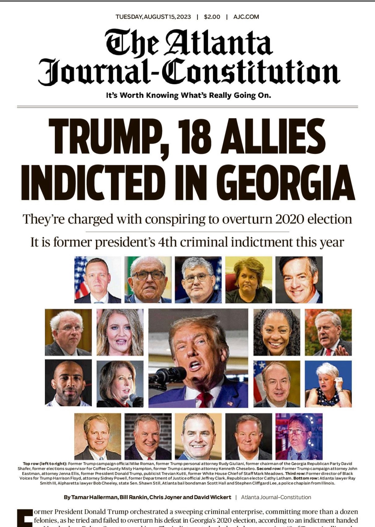 Former President Donald Trump and the 18 co-defendants that were charged alongside him for various alleged attempts to overturn the result of Georgia’s 2020 presidential election have until Aug. 25 at noon to turn themselves in voluntarily, Fulton County District Attorney Fani Willis told reporters late Monday night after the indictment was made public.