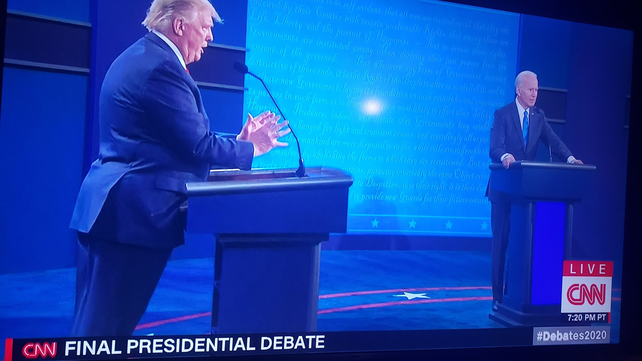 What a shit-fest. Listening to this in my car…so where was the F-N mute button? Score: 1 Biden; -5 Trump; AWOL/MIA -Kristen Welker.