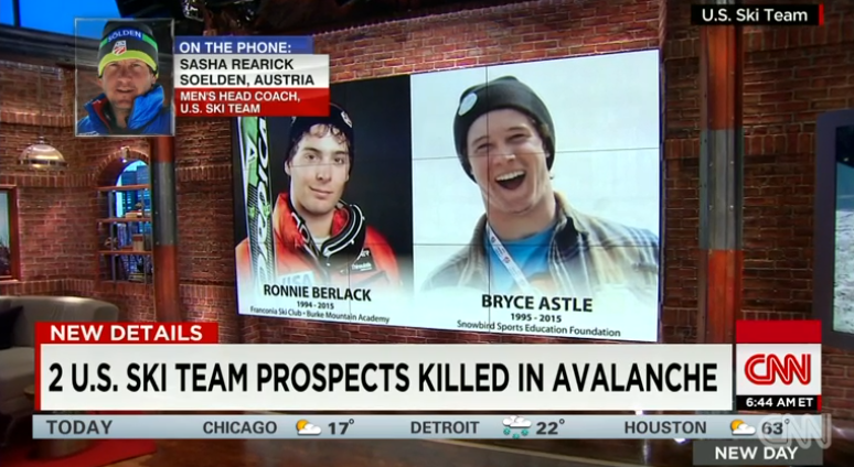Development team members Ronnie Berlack, 20, and Bryce Astle, 19, died Monday in the incident near the Rettenbach glacier in the mountains over Soelden, the U.S. Ski Team’s European training base since 2011.