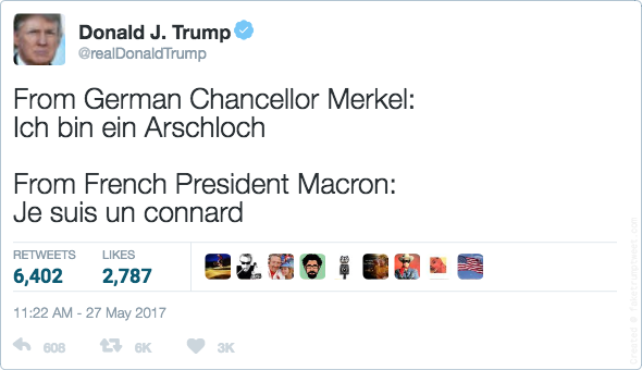 I can’t decide if Trump really won’t support the accord but was too much of a coward to announce it in front of other world leaders or whether he just likes the attention of being the only holdout.