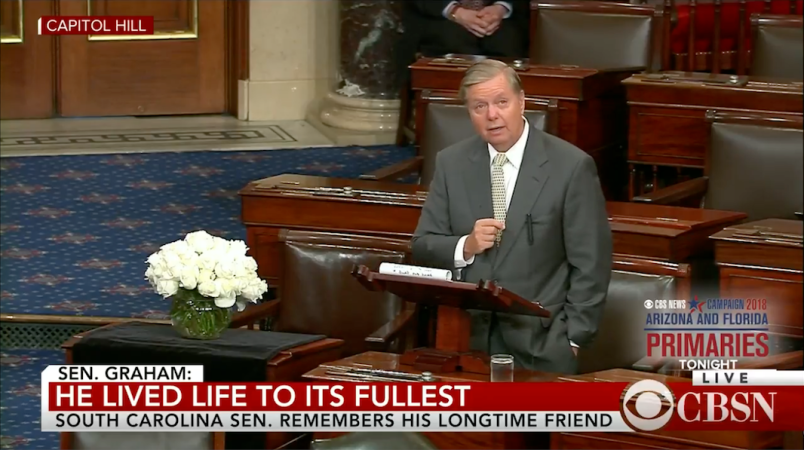 Sen. Lindsey Graham (R-SC), a longtime friend and colleague of the late Sen. John McCain (R-AZ), gave an emotional speech celebrating McCain on the Senate floor Tuesday.