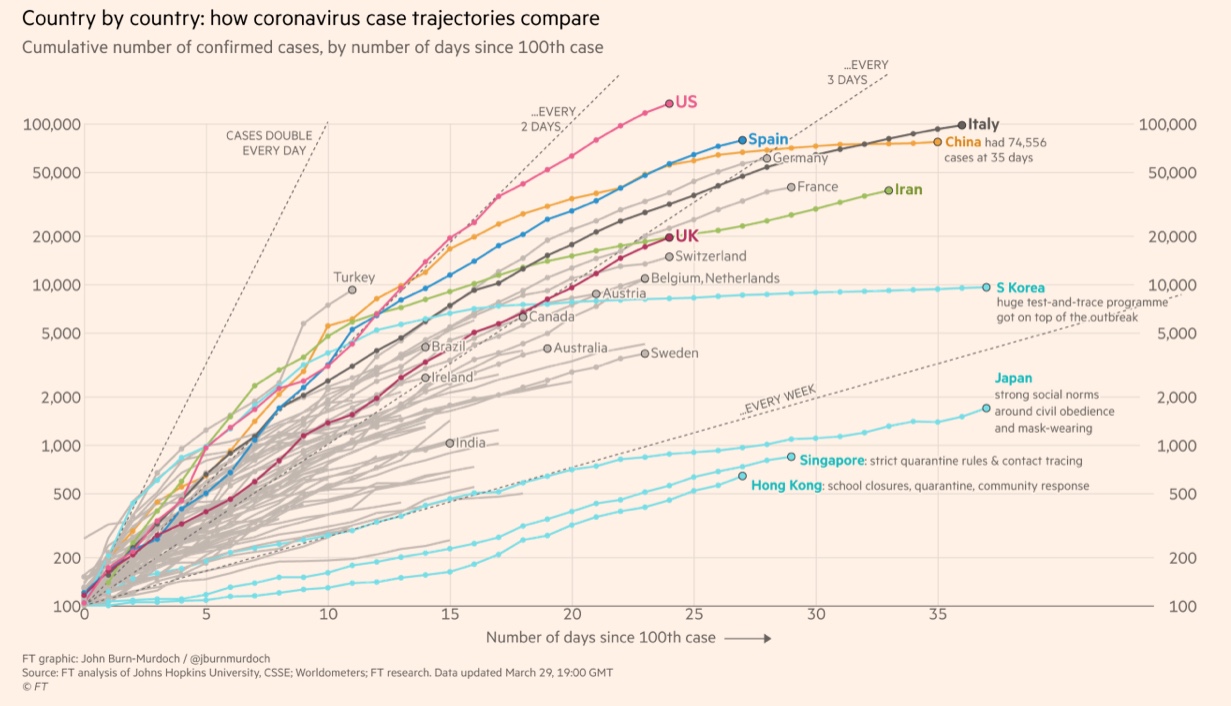 AND Covidiot Trump was more intent on “re-opening America” for profits rather than protect American lives in contrast to China’s draconian measures to flatten the curve. And as you can see from the FT graph below, China’s curve has flattened while US’s curve is the steepest!