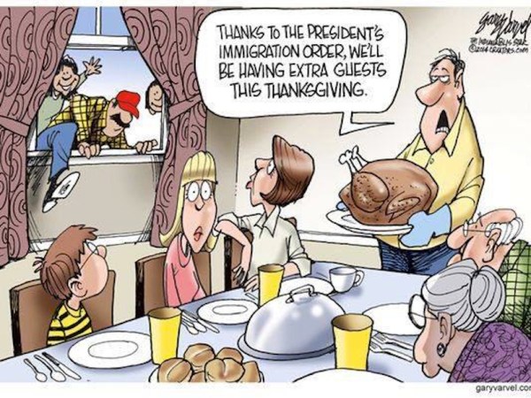 Newspaper ‘Erred’ In Publishing Cartoon Of Immigrants Crashing Thanksgiving
