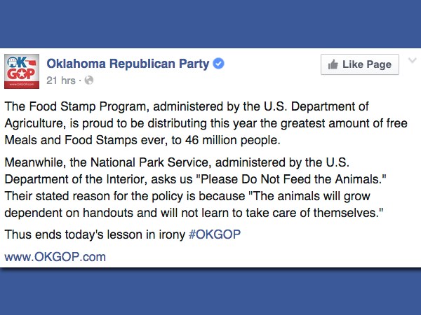 Oklahoma GOP Compares Food Stamp Recipients To Animals