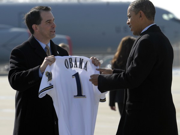 PHOTO: Walker Gives Obama Brewers Jersey