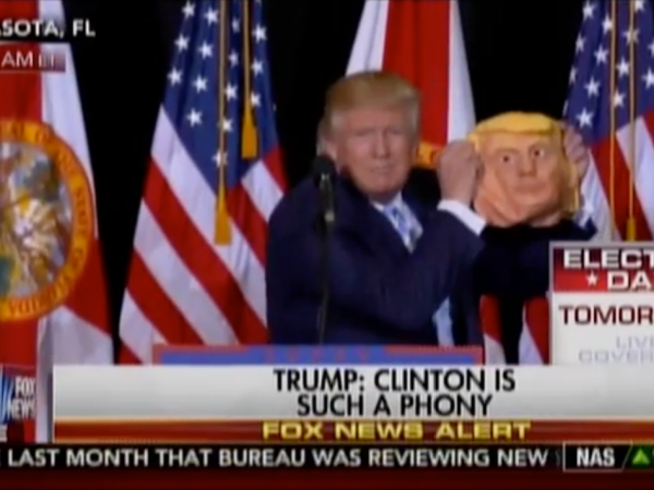 Trump Showing Off A Mask Of Himself At Rally Is The Perfect Visual Metaphor (VIDEO)