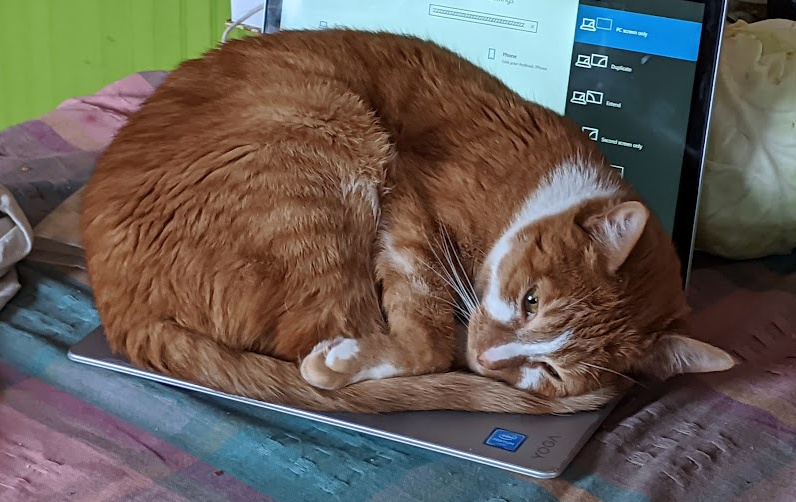 Clementine giving my laptop a hard reboot. (l originally was going to name her Orange is the New Cat, but the missus said no.)
