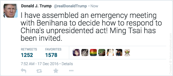President-elect Donald Trump blasted the seizure. Apparently misspelling “unprecedented,” he tweeted Saturday: “China steals United States Navy research drone in international waters – rips it out of water and takes it to China in unpresidented act.”