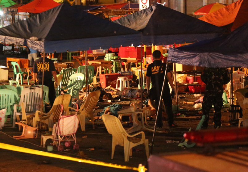 DAVAO, Philippines (AP) — Philippine officials: Explosion at night market kills 10, wounds 60 others in southern Davao City.