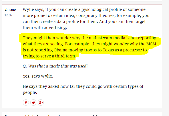 At a news conference on Monday on a linked issue, Wylie declined to answer questions about whether the data was also used in Britain by the campaign to leave the European Union. He said he would discuss the matter when he spoke to lawmakers from Parliament’s media committee on Tuesday.